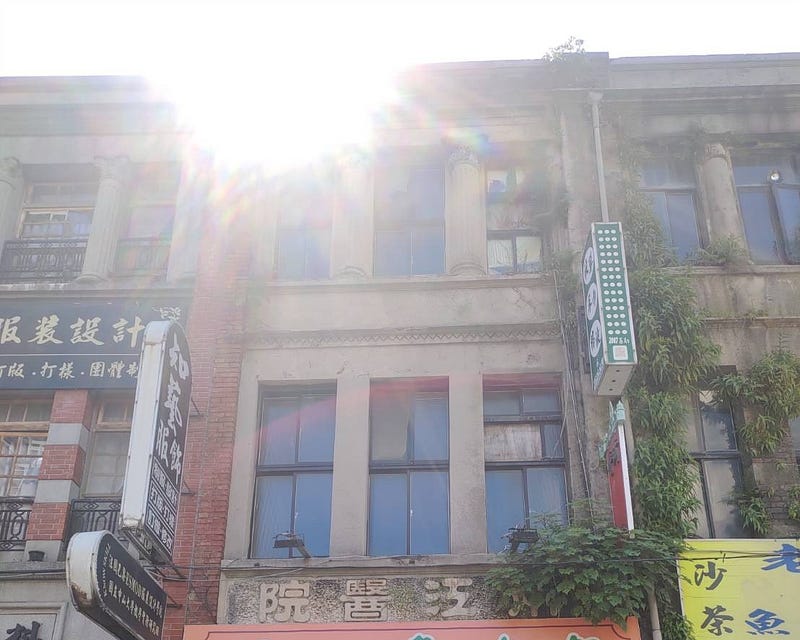 而從高產婦人醫院遺址進續前行,則迪化街便映入眼簾。在熙攘人群之中,有著幾乎被人遺忘的建築靜靜矗立著。這座兩層樓的建築,叫作「兩江醫院」,位於迪化街28號。這座建於1923年的醫院曾經熙來攘往,如今早已人去樓空,只剩斑駁牆壁上攀滿了綠意盎然的四葉草,在陽光照射下,像一抹淡淡的回憶,靜靜地訴說著歲月的故事。當人們來到迪化街,沉醉於這些仿巴洛克風格的古老建築之間時,往往忽略了她的存在。